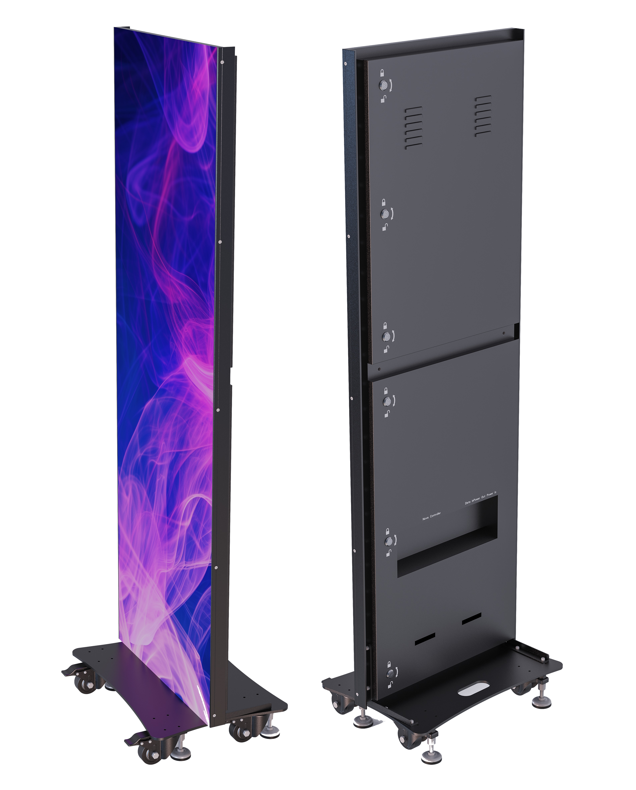 Our LED Digital Posters deliver seamless, large-format visibility for both interior and exterior environments. Available in indoor and high-brightness outdoor configurations, each slim, modular display can operate individually or connect to create a seamless visual wall with built-in HDMI, USB-3, Wi-Fi, and Ethernet. Engineered for mobility and 24/7 performance, they provide flexible, high-impact digital signage for events and retail.